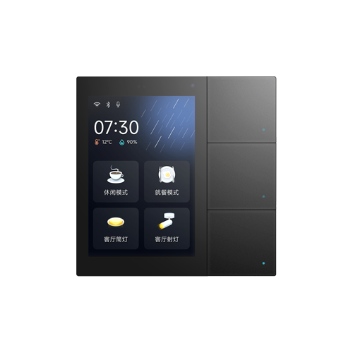 沿襲GVS 華爾茲智能面板屏鍵設(shè)計(jì)風(fēng)格,采用3.3寸觸摸屏+3個(gè)物理按鍵的外觀設(shè)計(jì),兼顧各年齡層家庭成員的交互習(xí)慣。