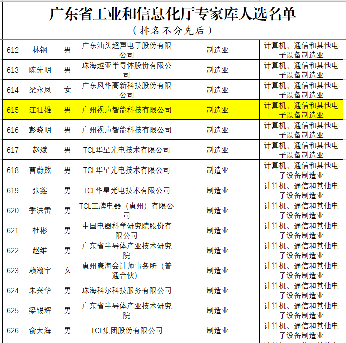 廣東省工業(yè)和信息化廳專家?guī)焓着霂鞂<遥ㄓ嬎銠C、通信和其他電子設(shè)備制造業(yè)項目評審專家