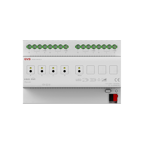 1/2/4 路通用調(diào)光執(zhí)行器(以下簡(jiǎn)稱調(diào)光器)根據(jù)產(chǎn)品有 1/2/4 路輸出,可連接一些具有可調(diào)光性能的燈光設(shè)備(如白熾燈、鹵素?zé)?、?jié)能燈、LED 燈等),通過(guò)總線可以對(duì)這些燈光設(shè)備進(jìn)行調(diào)光、場(chǎng)景預(yù)設(shè)、開關(guān)燈等操作,同時(shí)也支持 KNX 安全協(xié)議。采用導(dǎo)軌式安裝的調(diào)光器設(shè)計(jì)安裝在 35 毫米 DIN 導(dǎo)軌上的模數(shù)化設(shè)備,輸出端采用螺絲接線柱實(shí)現(xiàn)電氣連接。調(diào)光器的總線連接都是直接通過(guò) KNX 接線端子連接,系統(tǒng)供電除總線外不需要額外的電源電壓。