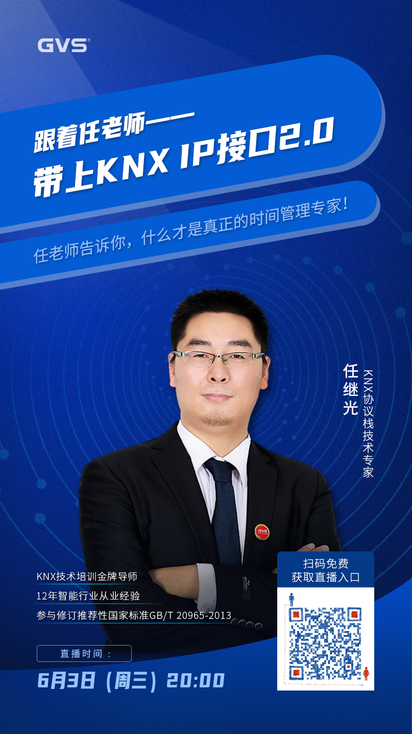 63日晚上8點,帶上業(yè)內(nèi)首創(chuàng)的「KNX IP接口2.0」,KNX協(xié)議棧技術專家任繼光任老師將在GVS視聲直播間告訴你,什么才是真正的時間管理專家!